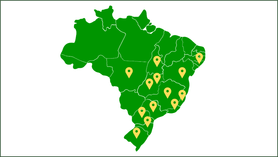 Já o Lúpulo é cultura mais recente, apesar de iniciativas exitosas nos séculos XIX e XX chegando no Brasil antes da Argentina, a produção se perdeu no tempo. Atualmente, segundo dados de 2024 da Associação Nacional de Produtores de Lúpulo – APROLÚPULO, a produção está espalhada em 109 propriedades rurais, em mais de 90 municípios e 13 estados da federação, concentrados em São Paulo, Minas Gerais, Santa Catarina, Paraná, Rio Grande do Sul e Rio de Janeiro conforme destaca mapa a seguir